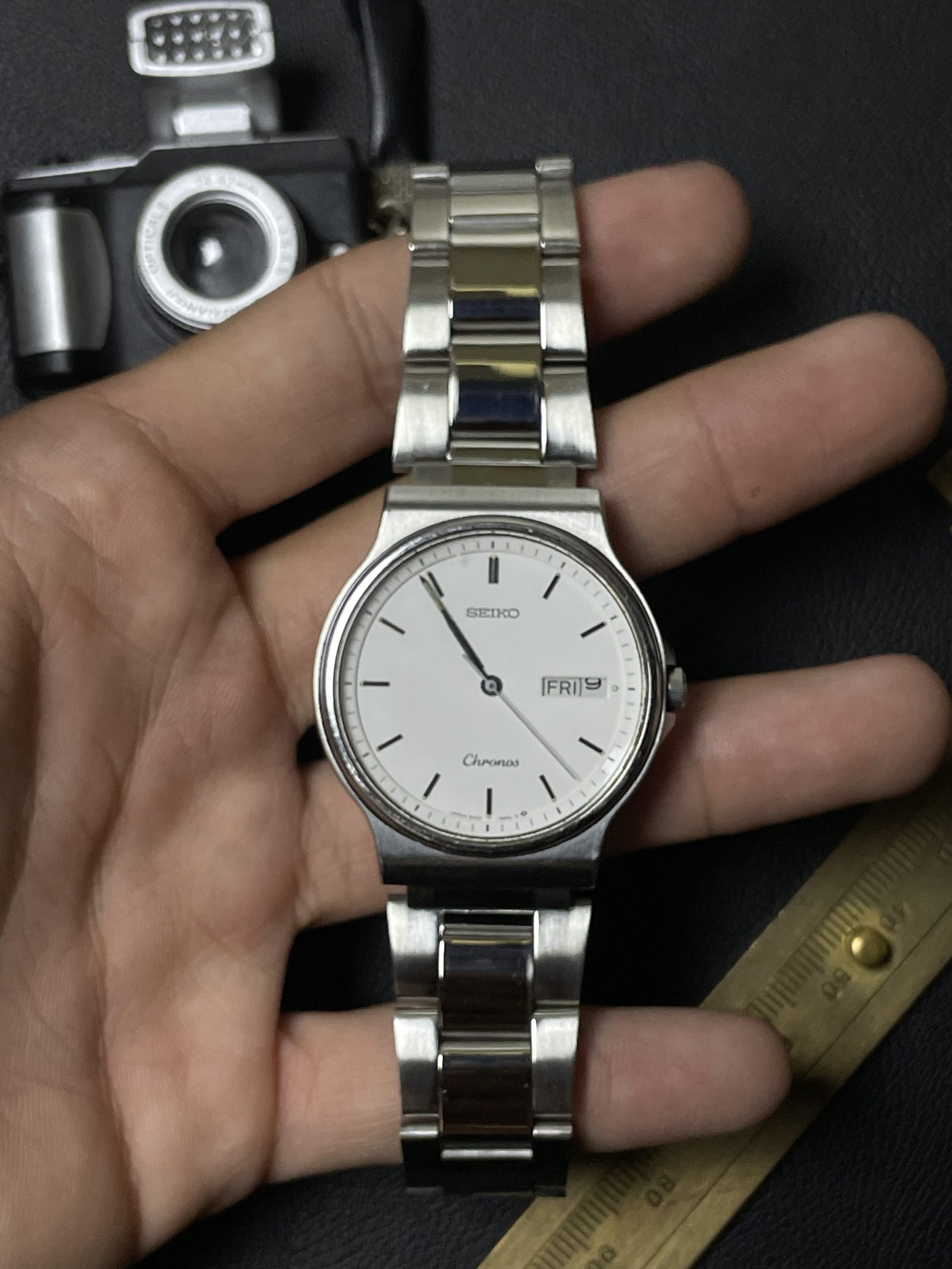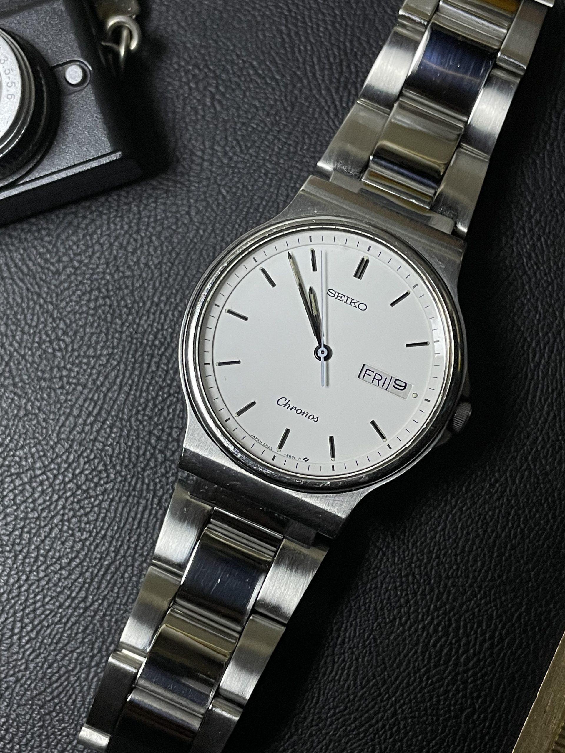 Chiếc Seiko Chronos Ref: 5H23-6B70 ra đời vào năm 1988, mang trong mình bộ máy quartz Nhật bền bỉ và chuẩn xác. Với kích thước vỏ 35mm, đây là mẫu đồng hồ vừa vặn, phù hợp với đa số cổ tay nam giới hiện đại.